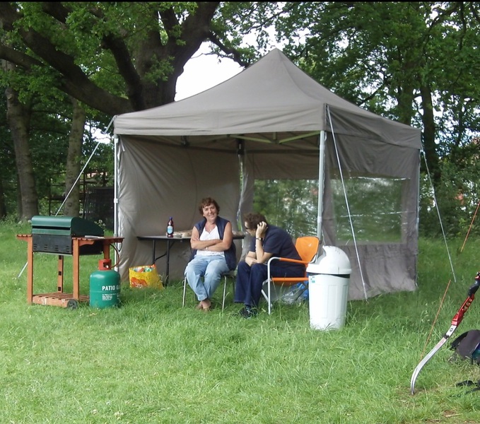 He was able to fit in his own archery time, shooting longbow, and doing very well at our competition clouts. Robin was one of the intrepid archers who ventured to foreign shores to shoot. He made it to France and Holland a number of times. On one infamous occasion, at a roundabout in France, all three cars of our convoy each took a separate exit in a 'starburst' fashion. It took hours to reconvene, Robin having taken a more scenic and lengthy route! Robin also made a name for himself drinking Jagerbombs during evening relaxtion at an annual shoot in Holland, and waking up late looking much the worse for wear!